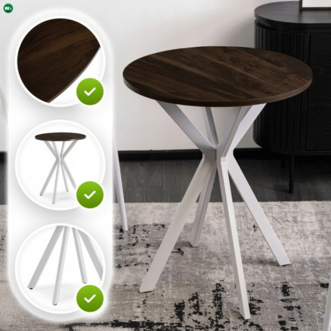 Teljes Kerek Étkezőasztal Dió/Fehér Színben. LAUREN 60 cm termékleírás