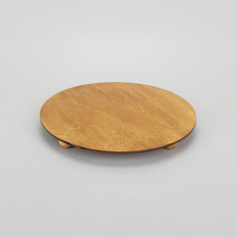Kerek fa dekortálca lábakkal, lazúrozott . Átmérő: 25 cm dekorációs kellék árgrafikon