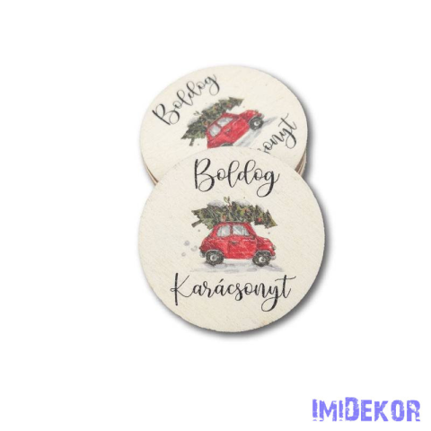Kerek karácsonyi 5cm 5db/csomag - Piros autó