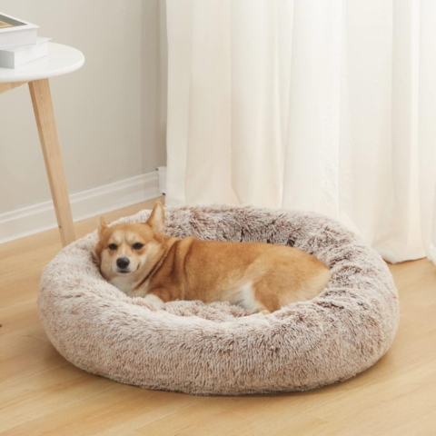 1 kép Kerek kisállat szőrmés fekhely-Barna - L
