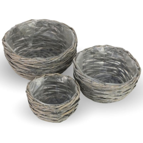 Fonott kaspó szett (3 db, bélelt)Dekoratív, természetes hatású fonott kaspó szett, amely három különböző méretű, fóliával bélelt kaspót tartalmaz. Tökéletes választás virágok, növények vagy dekorációs kompozíciók elhelyezésé