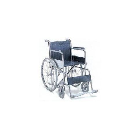 Termék jellemzői: - összecsukható - rozsdamentes acél váz - nylon szövésű ülőfelület - párnázott kartámla - leszerelhető lábtartók - tömör gumikerekek - beülő szélesség 46 cm - teljes szélesség: 64 cm - nagykerék átmérő: 59 cm - kis kerék átmérő: 20 cm -