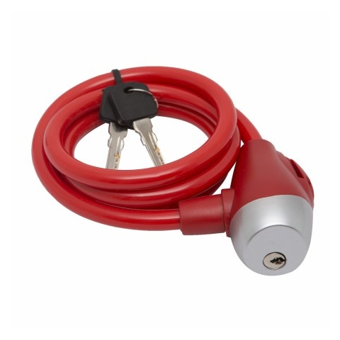 Kerékpár lakat 10 mm x 120 cm piros Kerékpár lakat (kábelzár). A bevont acélkábel ellenállóbb a vágó támadásokkal szemben. Minőségi zárszerkezet, 2 db kulccsal. Méret: 10 mm x 120 cm Szín: piros