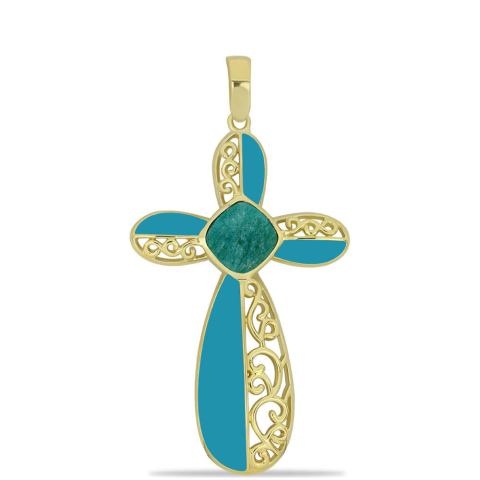 1 kép Kereszt Arannyal Bevont Ezüst Medál Amazonittal, Y58707