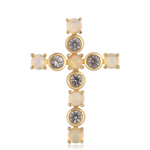 1 kép Kereszt Arannyal Bevont Ezüst Medál Etiópiai Opállal és Fehér Topázzal, ROS727