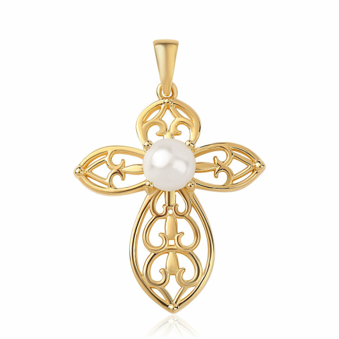 1 kép Kereszt Arannyal Bevont Ezüst Medál Fehér Édesvízi Gyönggyel, ROS205