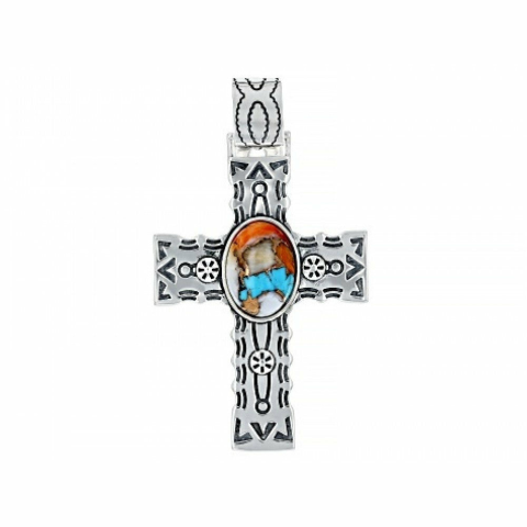 1 kép Kereszt Arannyal Bevont Ezüst Medál Osztriga Türkizzel, Y58292