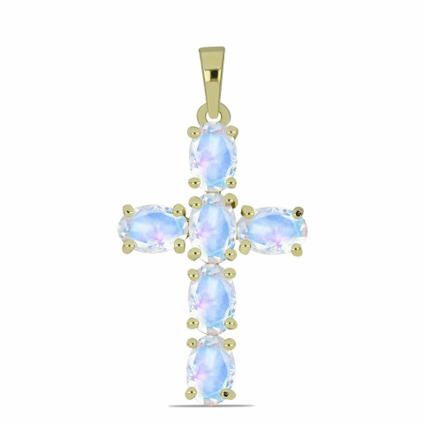 Kereszt Arannyal Bevont Ezüst Medál Szivárvány Holdkővel, Y61347