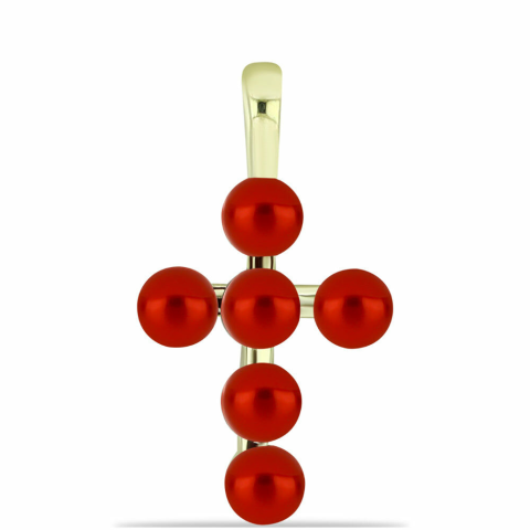 1 kép Kereszt Arannyal Bevont Ezüst Medál Vörös Édesvízi Gyönggyel, Y60231