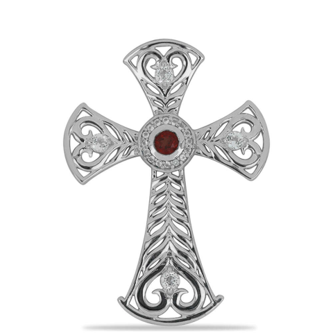 1 kép Kereszt Ezüst Medál Barton Gránáttal és Fehér Topázzal, Y55704