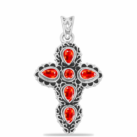Kereszt Ezüst Medál Etiópiai Vörös Opállal, Y58271