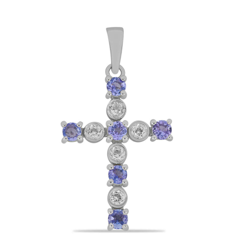 1 kép Kereszt Ezüst Medál "AA" Osztályú Tanzanittal és Fehér Topázzal, Y53745
