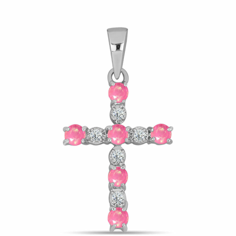 1 kép Kereszt Ezüst Medál Rózsaszínű Opállal és Fehér Topázzal, Y62437