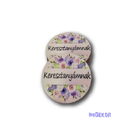 1 kép Keresztanyámnak kör 5cm - Púder háttér+virág minta