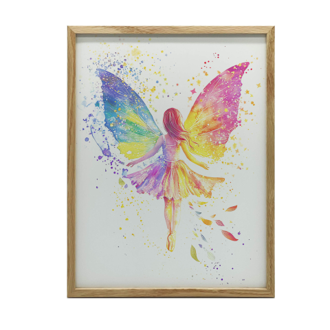 Tündéri álom: 50x70 cm-es faliplakát, sötétbarna fa kerettel ✨ Ez a lélegzetelállító 50x70 cm-es faliplakát egy varázslatos tündért ábrázol, vibráló színekkel és részletgazdag kidolgozással.  A kép Marcin Zbijowski tehetséges művész alkotása, aki a f...