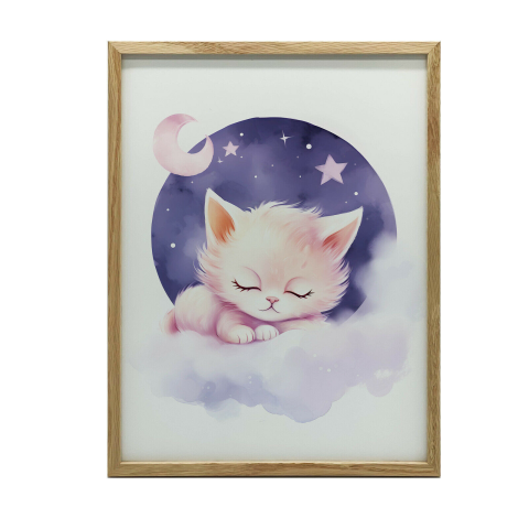 1 kép KERET FALI PLAKÁT ALVÓ MACSKA RÓZSASZINTŰ FELHŐN GYERMEKEKNEK 50x70