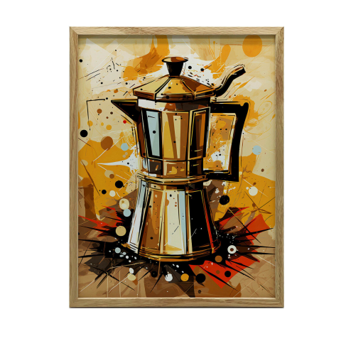 Arany Aroma Kávéfőző Poszter - 70x100 cm - Elegáns Otthoni Dekoráció ☕ Ez a lenyűgöző 70x100 cm-es poszter Marcin Zbijowski művész egyedi alkotása, amely egy stílusos kávéfőzőt ábrázol. A sötét fa kerettel ellátott, 230 gsm-es matt papírra nyomtatott...