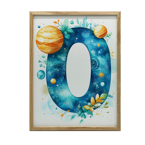 Kozmikus Betű O Falikép: Modern, Elegáns Dekoráció a Házadba ✨ Ezzel a gyönyörű faliképpel egyedi hangulatot teremthetsz otthonodban. A képen egy O betű látható, melyet kozmikus elemek, bolygók és virágok díszítenek. A sötétbarna fa keret elegáns meg...
