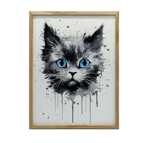 1 kép KERET FALI PLAKÁT MACSKA Akvarell színben, DÍSZÍTETT FA 50x70 CM