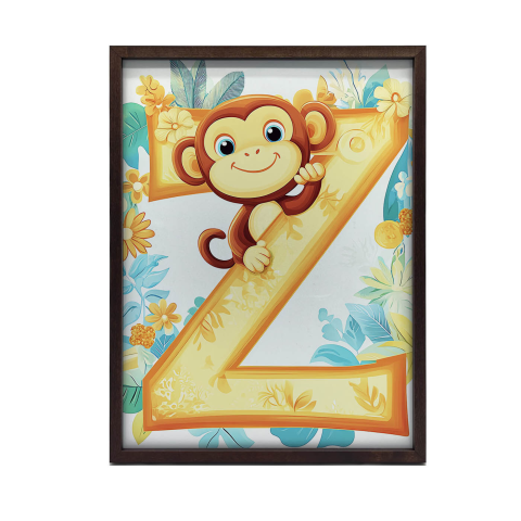 Majom a Z betűn - Trópusi Paradicsom Faliplakát (60x90 cm) Vidám, színes faliplakát, ami vidámságot visz a gyerekszobába vagy bármelyik helyiségbe! 🐒 Jellemzők: Méret: 60x90 cm Keret: Fekete alumínium kerettel, azonnal akasztható Papír: 230 g/m²...