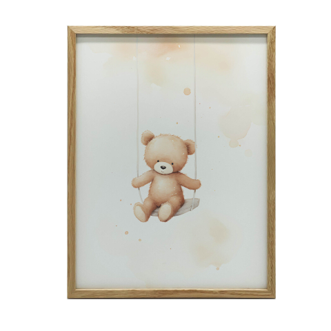 Mackós hinta faliplakát: Vidám dekoráció gyerekszobába 🧸 Ez a bájos faliplakát egy aranyos mackót ábrázol hintázás közben, egy gyönyörű, pasztell árnyalatú háttér előtt. A sötétbarna fa keret elegáns megjelenést kölcsönöz, tökéletesen illeszkedve a...
