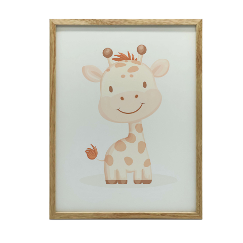 Mosolygós Zsiráf Faliplakát gyerekszobába - 50x70 cm Vidám és aranyos zsiráf faliplakát, tökéletes választás a gyerekszoba dekorációjához! A 230 gsm-es matt papírra nyomtatott kép egy sötétbarna fa keretben érkezik, így azonnal felakasztható. 🥰 Jell...