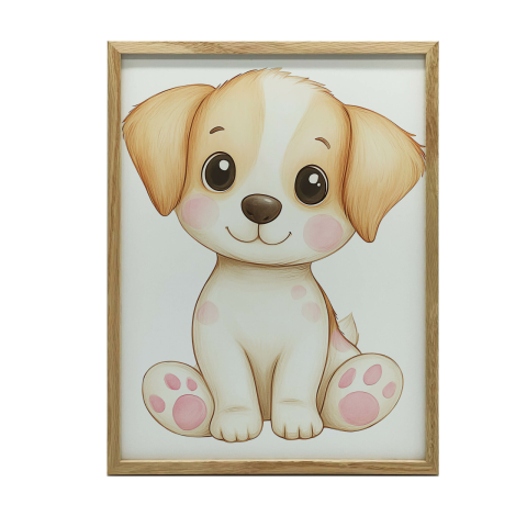Kedves kiskutya faliplakát: Vidám dekoráció otthonába 🐶 Ez a gyönyörű faliplakát egy aranyos kiskutyát ábrázol, amely melegséget és vidámságot visz otthonába. A sötétbarna keret elegáns megjelenést kölcsönöz, tökéletesen illeszkedve a modern és klas...