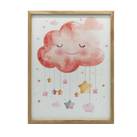 Varázsfelhő faliplakát: álomszép dekoráció a hálószobába ✨ Ez a gyönyörű, 70x100 cm-es faliplakát egy bájos, álmodozó felhőt ábrázol, amelyről apró csillagok lógnak. Tökéletes választás, ha meghitt, nyugodt hangulatot szeretnél teremteni a hálószobád...