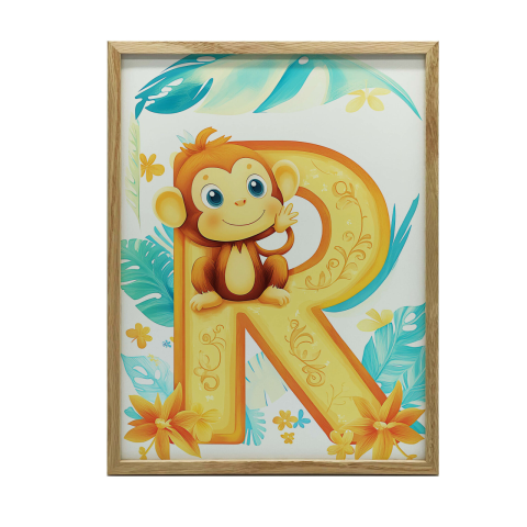 Majom az "R" betűn faliplakát: Egyedi otthoni dekoráció 🐒 Ez a gyönyörű faliplakát vidám majmot ábrázol egy díszes "R" betűn, trópusi levelek és virágok között. Tökéletes választás gyerekszobába, de bármilyen helyiségbe, ahol egy...