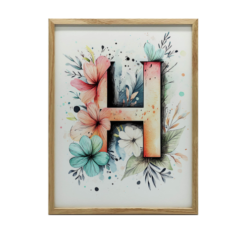 Virágos H betűs faliplakát: Elegáns dekoráció otthonába 💐 Ez a gyönyörű faliplakát egyedi dekorációt kínál otthonába. A kézzel festett virágok és a H betű kombinációja modern és elegáns megjelenést kölcsönöz a helyiségnek. A sötétbarna fakeret tökél...