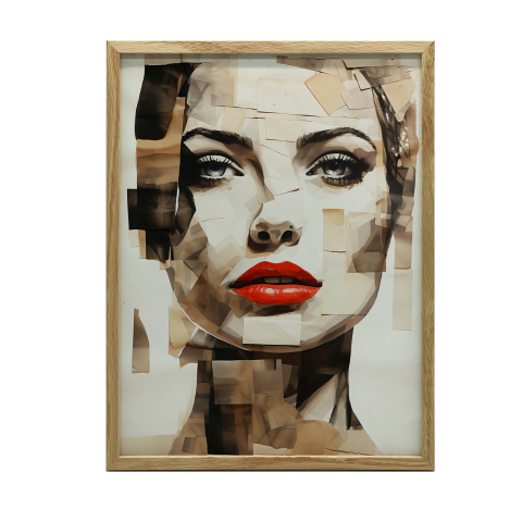 Kolázs stílusú női portré poszter - 70x100 cm Ez a lenyűgöző, kolázs technikával készült női portré poszter egyedi hangulatot kölcsönöz otthonának. A sötét-bézs árnyalatok és a vibráló piros ajkak kontrasztja modern és elegáns megjelenést biztosít. A...