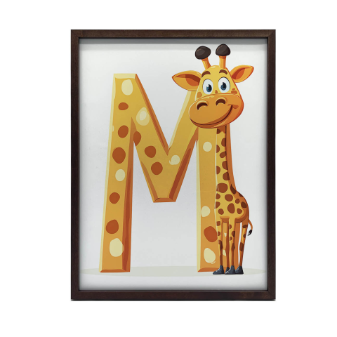 Zsiráfos faliplakát gyerekeknek - 'M' betűvel, 70x100 cm Vidám és tanulságos dekoráció a gyerekszobába! Ez a gyönyörű faliplakát egy aranyos zsiráfot ábrázol az 'M' betűvel, segítve a kicsik betűtanulását játékos módon. A kiváló minőségű, matt felüle...
