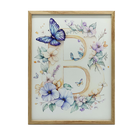Virágos Pillangós B betűs Falikép - Prémium Vászon, 50x70 cm Ez a gyönyörű falikép tökéletes választás, ha szeretnéd otthonodba csempészni a természet szépségét! 🦋💐 Marcin Zbijowski művész által tervezett, egyedi grafikája egy B betűt ábrázol, mel...