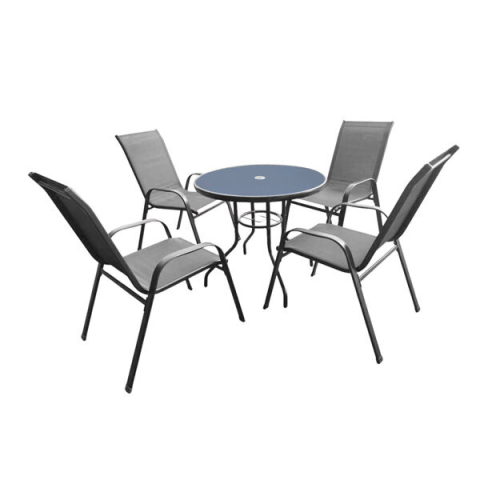 1 kép Kerti bútor szett - Kerek asztal + 4 db szék - Szürke