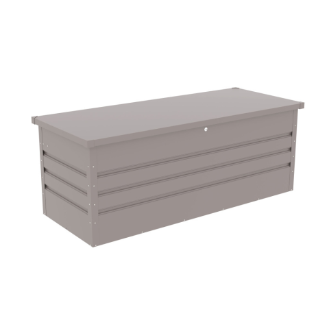 A horganyzott acélból készült, karbantartásmentes, zárható kerti láda biztonságosan védi a tárolt kerti szerszámokat és felszereléseket. Méretei 165 x 69 x 62 cm, a fedél könnyen nyitható a gázrugóknak köszönhetően, a zár és kulcs a csomag része. Hol