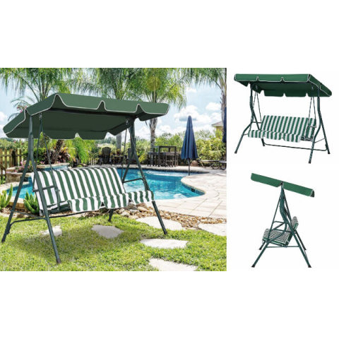Kerti hintaágy - 3 személyesA stabil szerekezetű, stílusos megjelenésű kerti hintaágy nagyon kényelmes és akár 3 fő pihenését is garantáljaA tető rendkívül praktikus, ugyanis megvédi a pihenésre vágyókat a napsütéstől.Állítható, így a dőlésszöget igényei szerint állíthatja be.Kiváló minőségű anyagból készült, így bírja a terhelést, ezért használhatja akár 3 személy is.Precíz kivitelezésének köszönhetően ÖSSZESZERELÉSE EGYSZERŰ ÉS NEM IG