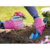 A 8. méretű kerti kesztyű univerzálisan használható, és kerti munkákhoz ideális. A kesztyű rózsaszínű párnázott anyagkeverékből (poliészter, spandex) készült. A belső felületek szürke mikroszálas műbőrből vannak. A kesztyű varratmentes tenyérrésszel és tépőzárral rendelkezik, amely csúszásmentes viseletet biztosít.