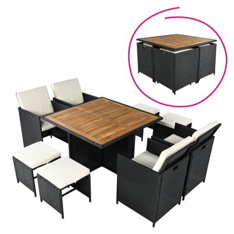 Teljes Kerti rattan szett, akácfa, fekete/krémszínű/természetes, MELFORD termékleírás