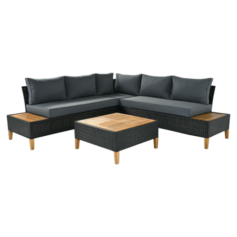 Teljes Kerti rattan szett, akácfa, fekete/szürke/természetes, MALKOM termékleírás
