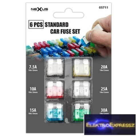 Késes biztosíték egységcsomag 7.5A, 10A, 15A, 20A, 25A, 30A 19x13mm