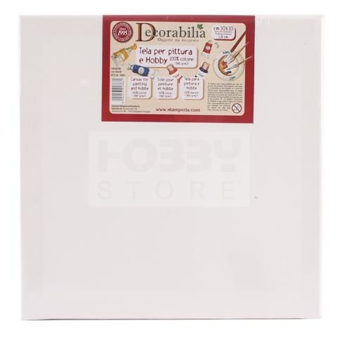 Keskeny keretű feszített festővászon 30X30 cm - 8662 Kiváló minsőségű a keretre feszített vászon akril és olaj festéshez. A termék kifejezetten alkalmas akrilfestékkel, olajfestékkel és pouring technikával való festéshez. Kiválóan alkalmas ecset spatula