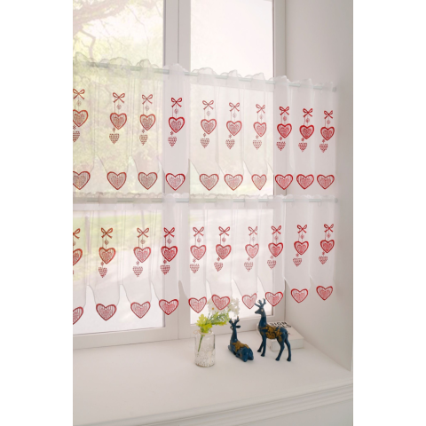 1 kép Kész függöny Alíz Konyhai vitrázs voile Piros Szivecske minta 150x45cm