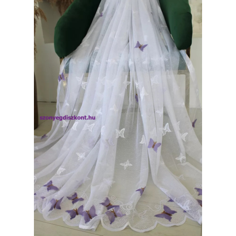 Kész függöny Amelia fehér Lila pillangó minta 300x250cm lakástextília termékleírás