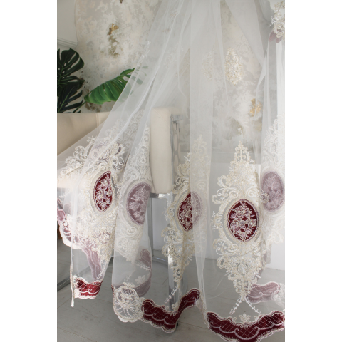 Teljes Kész függöny Babylon Barokk törtfehér Karikás Bordó minta 280x250cm termékleírás