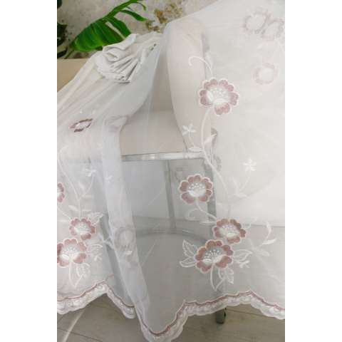 Teljes Kész függöny Barokk törtfehér Inda virág Púder minta 280x260cm termékleírás