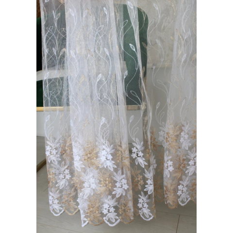 Teljes Kész függöny Brillant 77 fehér Arany minta 300x180cm termékleírás