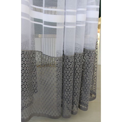Teljes Kész függöny Freya fehér Sötétszürke minta 300x180cm termékleírás