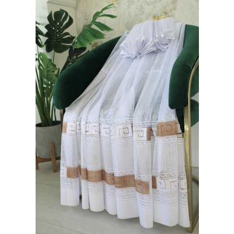 1 kép Kész függöny Hermes fehér Barna görög minta 200x160cm
