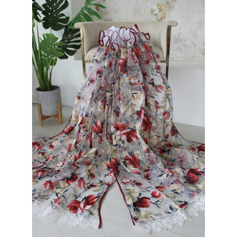 1 kép Kész függöny Lynette fehér Piros rózsa minta 400x150cm