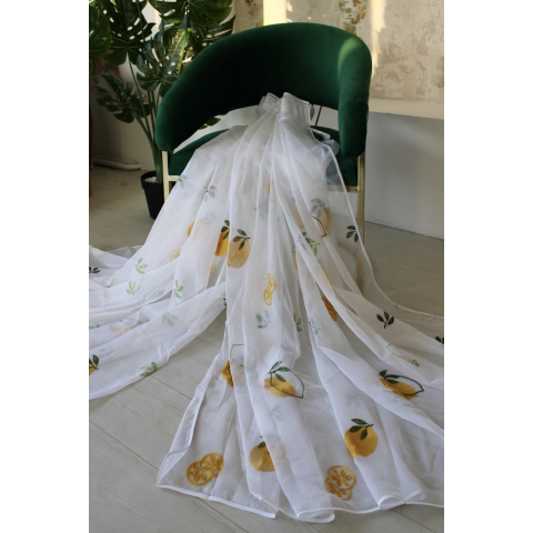 1 kép Kész függöny Lynette fehér Sárga Citrom minta 400x150cm